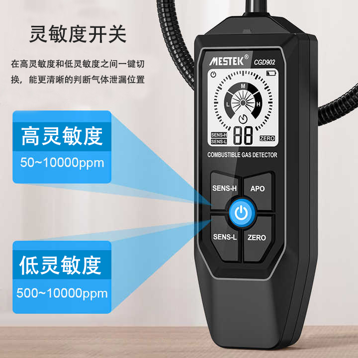 4、高灵敏度测量范围:50~10000ppm