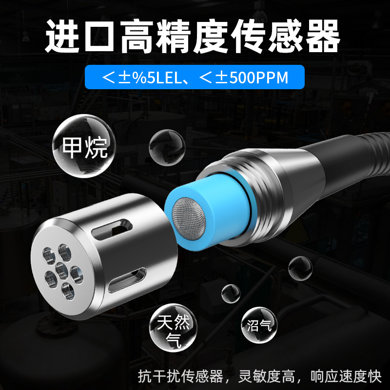 5、测量精度:<±5%LEL / <±500ppm