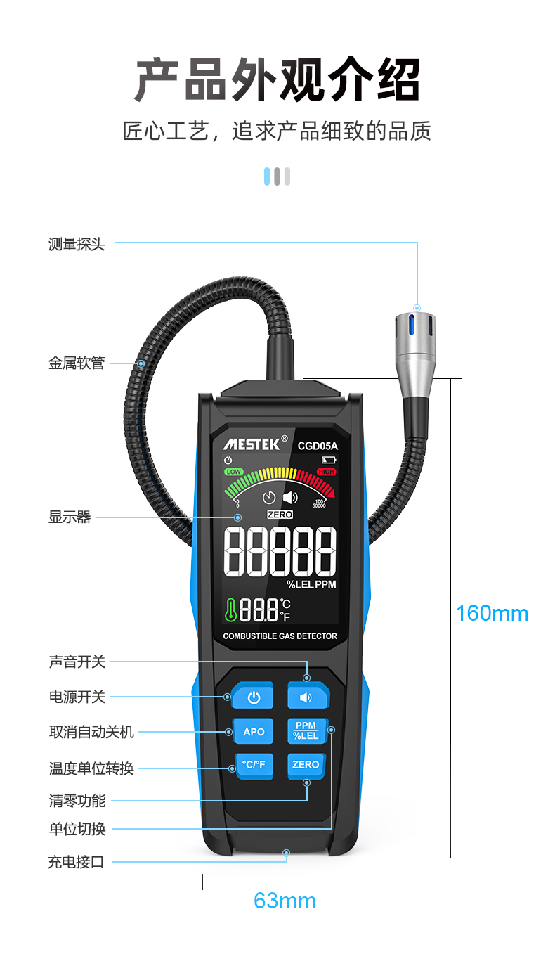 5、测量范围:0~100%LEL / 50~50000ppm(以甲烷为基础)